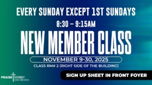 Discipleship Class 8:30am-9:15am – Youth Classroom (2nd, 3rd, 4th and 5th Sundays)